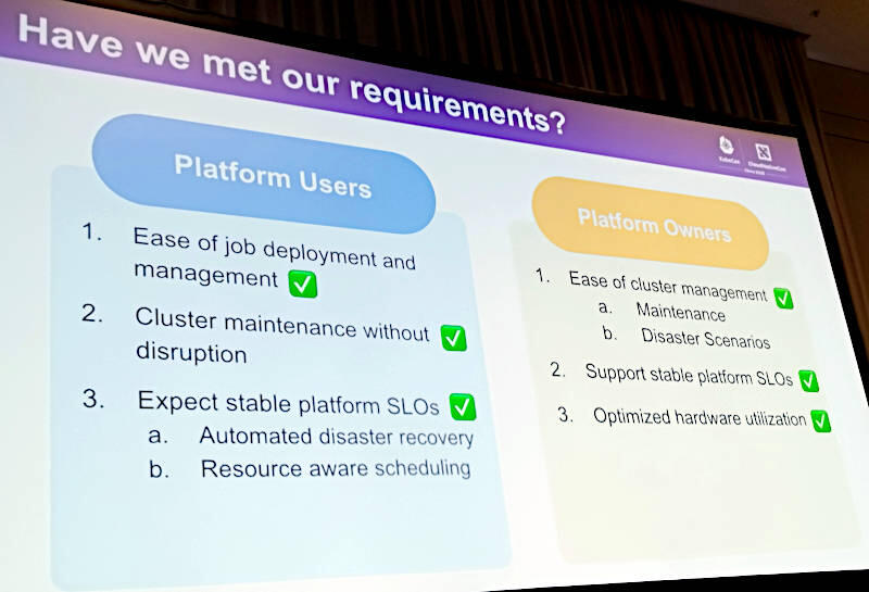 これでアプリケーションデベロッパーも運用管理者も物理クラスターを意識しない抽象化が可能になり、それぞれの要件は満たせたことを紹介。