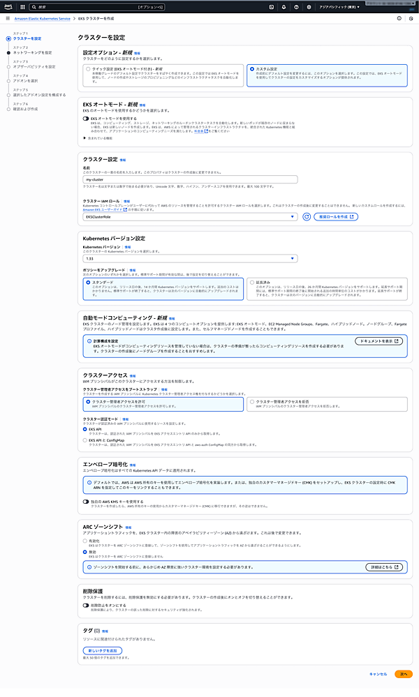 【Amazon EKS クラスターの作成】