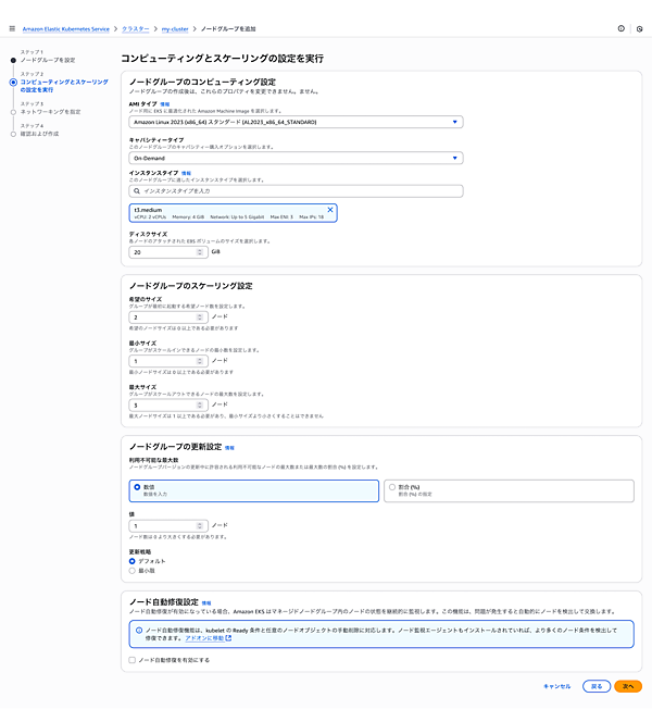 【マネージドノードグループの作成】