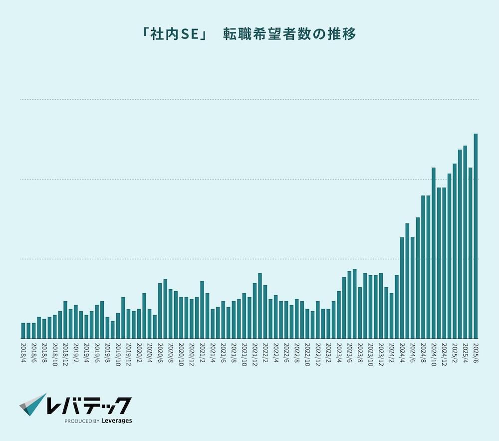 しかし社内SEの人気は高まっていることや転職が珍しくない現代において、社内SEで活躍していた方も転職市場には多くいるのが現状です。 実際に社内SEに関する転職希望者数は3年で5倍に増加。企業は複数の応募の中から1名や2名を選ばなければならないケースも珍しくありません。