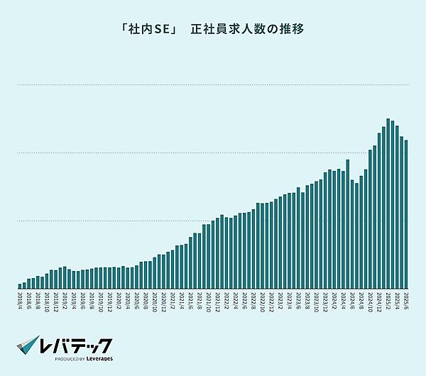 社内SEの求人数は冒頭でお伝えしたとおり増加していますが、これは1社あたりの採用枠が増えたわけではありません。DX化の流れで「社内SEを採用したい」と考える企業が増えた結果、市場全体の求人数が増えたのです。