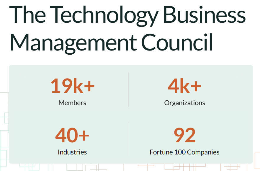 TBM Councilには19,000人のメンバーが4,000社から参加していると記載されており、メンバーはCxOが主体であると想定される。