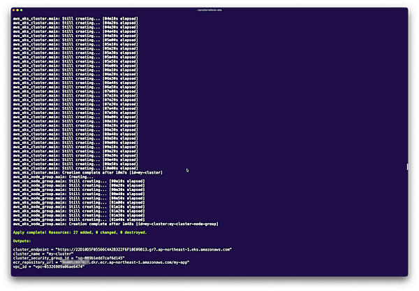 Apply complete! Resources: 27 added, 0 changed, 0 destroyed.