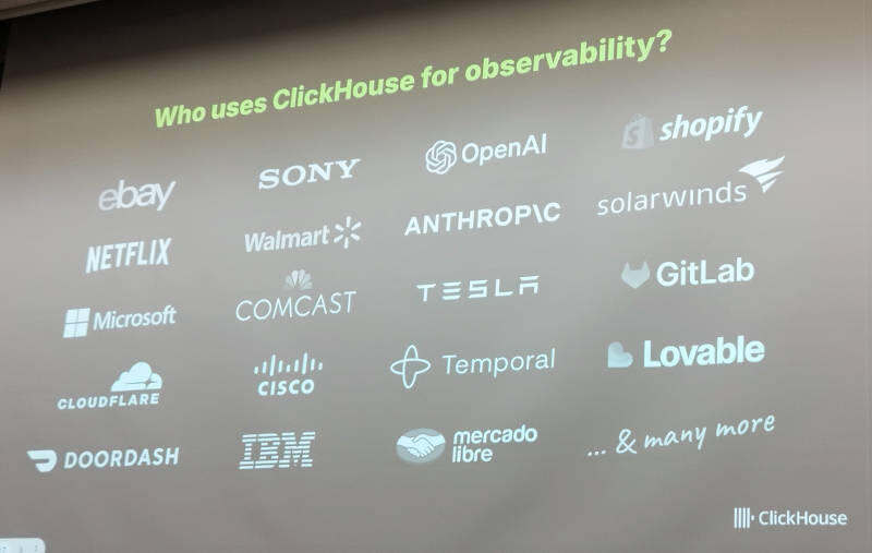 そしてオブザーバビリティのためのソフトウェアスタックがオープンソースで構成されていることを紹介。ここで紹介されているオブザーバビリティのためのツールHyperDXは、ClickHouseが2025年3月に買収を発表した新興のオブザーバビリティベンダーが開発したソフトウェアで、高速性と低コスト(比較対象はDatadogやNew Relic)を売りにしている。分析のコアとなるデータストアとしてClickHouseを使っていたことが発端となって、お互いが一緒になる選択をしたという。
