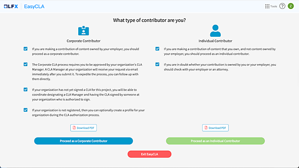 やりたいことが決まったら、次のステップはコミュニティの行動規範を尊重しながらコントリビューターガイドラインを読み、「Contributor License Agreement(CLA:コントリビューターライセンス契約)」に署名することです。