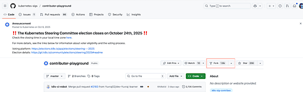 今回は「kubernetes-sigs/contributor-playground」という練習用のリポジトリを使って体験していただきます。このリポジトリは、新しいコントリビューターがKubernetesプロジェクトのレビューやPRの流れを安心して試せる「安全な練習環境」として用意されています。