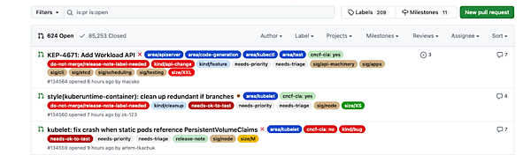 場合によってはPR本文かコメント欄にラベルを追加することもあります。KubernetesではPRの対象モジュールを示すsigラベル(sig/testing、sig/node、sig/docsなど)や、PRの種類を示すkindラベル(kind/bug、kind/api-changeなど)がよく使われます。
