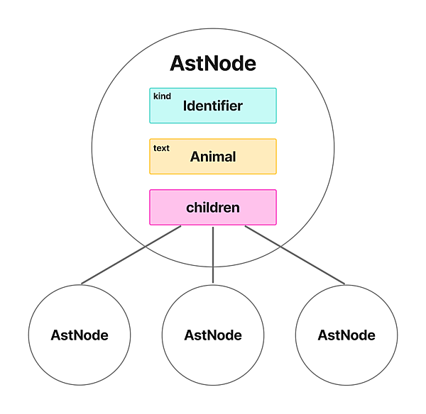入力されたソースコードを元に、Compiler APIで生成したASTから不要なプロパティを除き、以下のデータを出力するCLIを実装しました。