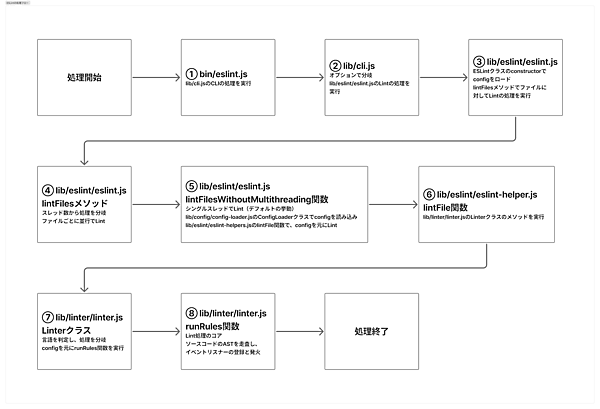 図の番号ごとに処理を深堀ります。なお、今回はFlat Configに対応したESLintの処理を読み進めます。