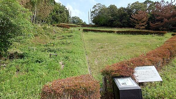 一方の平成のへそは、科学館の近くの丘の上にあります。ゼビウスのソルのようなものが4本立っている、あの中央です。