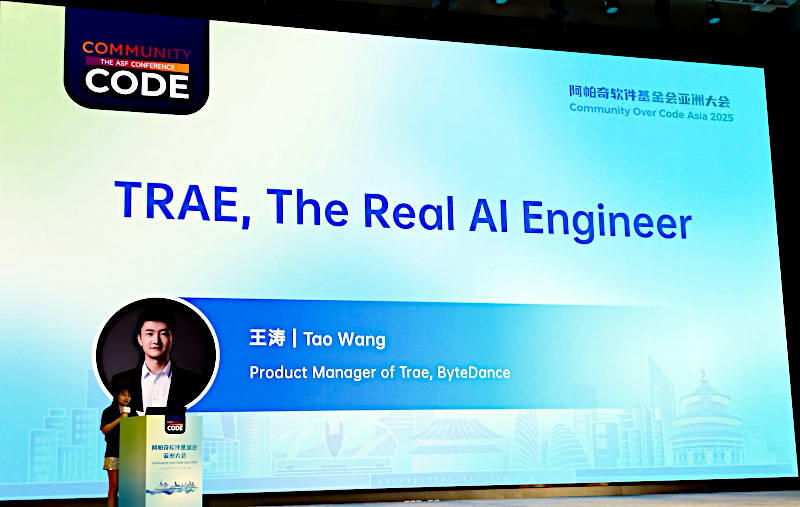 The Apache Software Foundationが北京で開催したCommunity Over Code Asia 2025(COC)のキーノートから、ByteDanceが開発したソフトウェア開発のための生成AIツール、TRAE(The Real AI Engineer)を紹介する。このセッションはCOCの初日、2025年7月25日のキーノートの中で行われたもので、ビッグデータが主体のカンファレンスであるCOCでも生成AIは大きなトピックになっていたことがわかる。