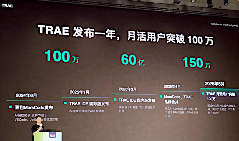この年表で示されているのは2024年6月にMars Codeが公開されてから、2025年の1月、3月、4月、5月と非常に短期間でコードアシスタント機能が開発され、100万ダウンロードというマイルストーンに到達したことである。ここで示されているように、IDEに組み込んだ国際版が2025年1月、その国内版が3月、TRAEにデバッグ機能であるMars Codeを統合したのが4月、そして100万ダウンロードが5月と毎月のように開発が進んでおり、ByteDanceの開発能力の高さを示していると言える。もちろん、TRAEの開発自体にTRAEが使われていることは間違いないだろう。
