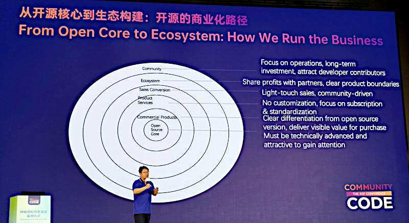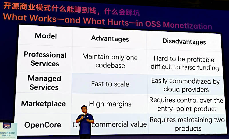 オープンソースソフトウェアをビジネスとして持続させることをリアルな体験を踏まえて解説したセッションとして非常に良い内容だったと感じる。特に後半はすべて英語でのスライドとすることで、このカンファレンスに参加した非中国語圏のエンジニアにも訴求したいという意図を感じる内容となった。惜しむらくは、より具体的な数字がなかったことだろう。中国人エンジニアのプレゼンテーションは何よりも失敗の露出を避ける傾向にあるなかで、苦労話とも取れる内容となったのは珍しいと言える。