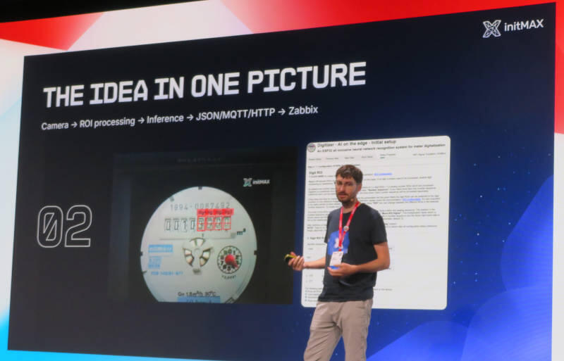このプレゼンテーションは、AIをエッジデバイスで実行することでこれまでシステムに組み込むことが難しいと考えられていたアナログなデバイスをZabbixの監視対象にするという内容で、タイトルも「AI on the Edge in Zabbix」というシンプルなものとなっていた。