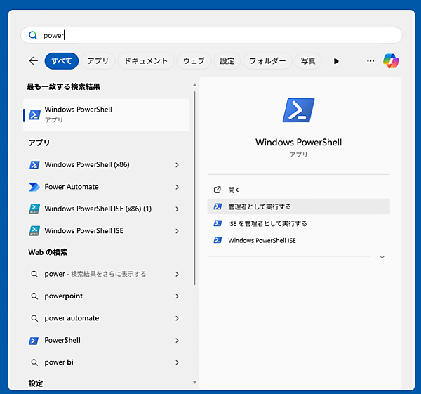 続いてディスクイメージをマウントしますが、これには管理者権限が必要となります。管理者権限で新しいPowerShellを起動してください。
