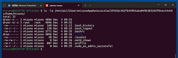 あとは先ほどインストールしたレスキュー用のWSLを起動し、必要なファイルを救出してください。