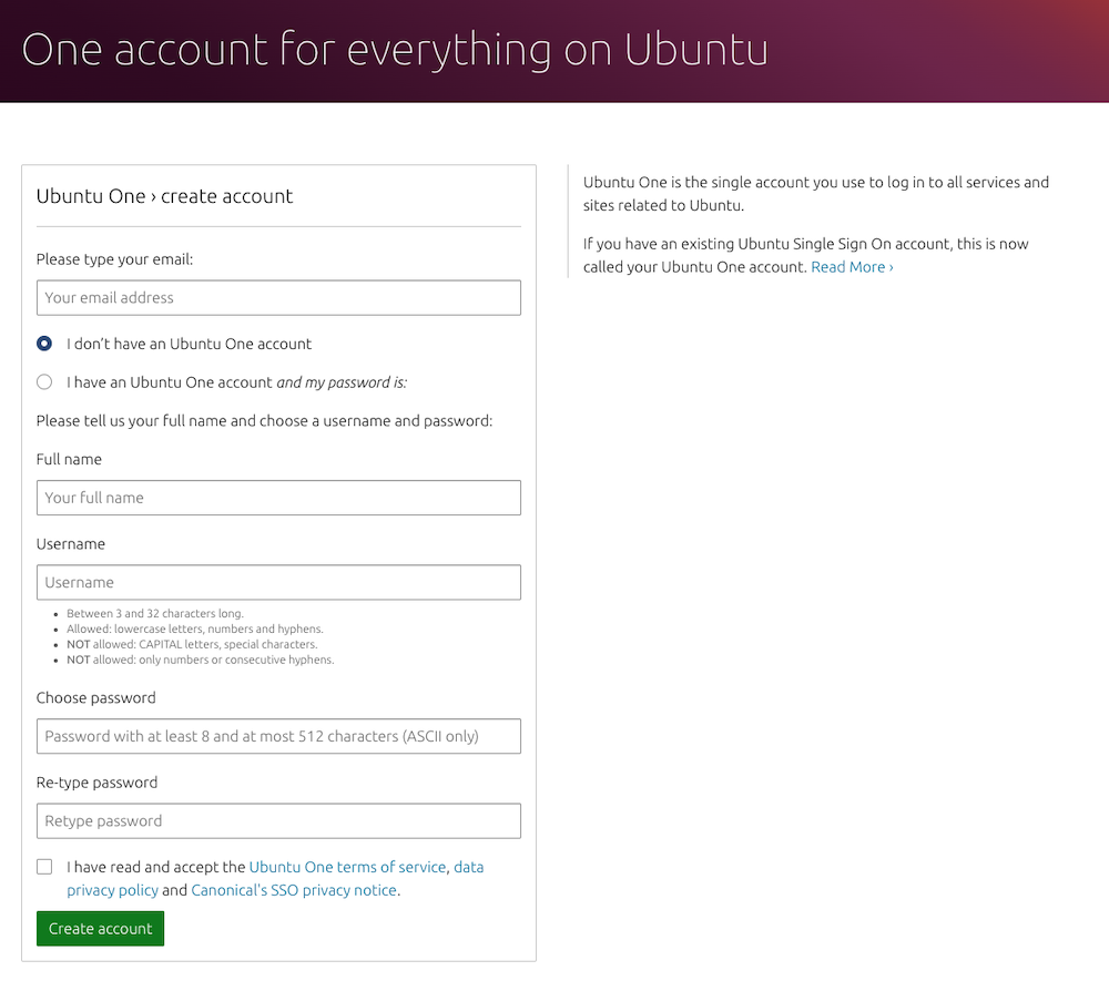 Ubuntu Proを利用するには、Ubuntuのシングルサインオンサービスである「Ubuntu One」アカウントを作成し、トークンを取得する必要があります。