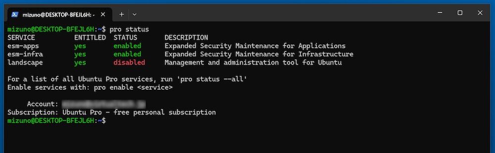 標準で5年使えるものの、そのセキュリティサポートが一部のパッケージに限定されていたのはLTS版のUbuntuにおける弱点の1つでしたが、Ubuntu Proを使えばDebian GNU/Linux譲りの膨大なパッケージでもセキュリティサポートを受けることができます。本記事で紹介した通り、個人利用であれば5台まで無料でUbuntu Proを体験できます。universeのパッケージにセキュリティアップデートが提供されるだけでも、非常に大きなメリットです。ぜひ、ご家庭のサーバーや作業用のWSL環境で試してみてください。
