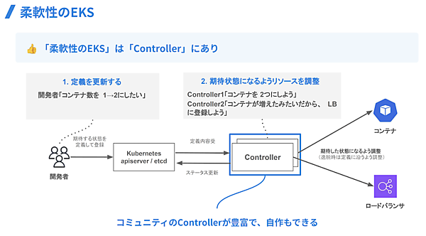 和田氏はこの違いについて「ECSはとにかくシンプルで、決めなければいけないことが少ないのが魅力です。対してEKSは柔軟性がある分、考える範囲も広がります」と説明する。単なる優劣ではなく、どちらが組織の将来に適しているかが検討すべきポイントであった(図3)。
