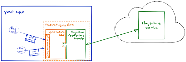 OpenFeatureの最大の狙いは、アプリケーションコードとフラグ評価の実装(プロバイダー)を分離することにあります。