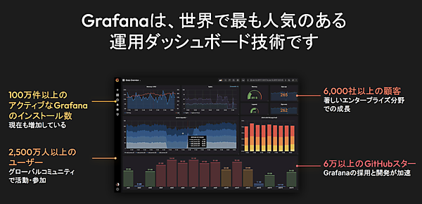 「Grafanaは、世界で最も人気のある運用ダッシュボード技術です。データをビジュアル化する技術として、Grafanaは2,500万人以上に利用されており、稼働中(アクティブ)のインスタンスは100万を超えます。これは東京都の人口(約1400万人)よりも多い数です」(Hartmann氏)