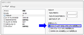 ([Intel VT-x/EPTまたはAMD-V/RVIを仮想化]を有効(図7)) - ハードディスク: 500GB以上