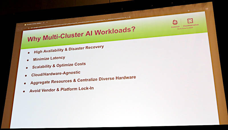 最初はPham氏による、マルチクラスターの上でAIワークロードを実行する背景を解説する部分からプレゼンテーションが始まった。