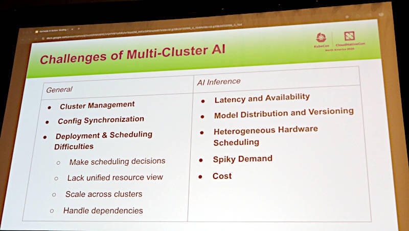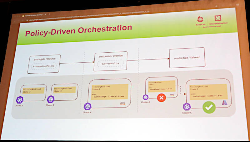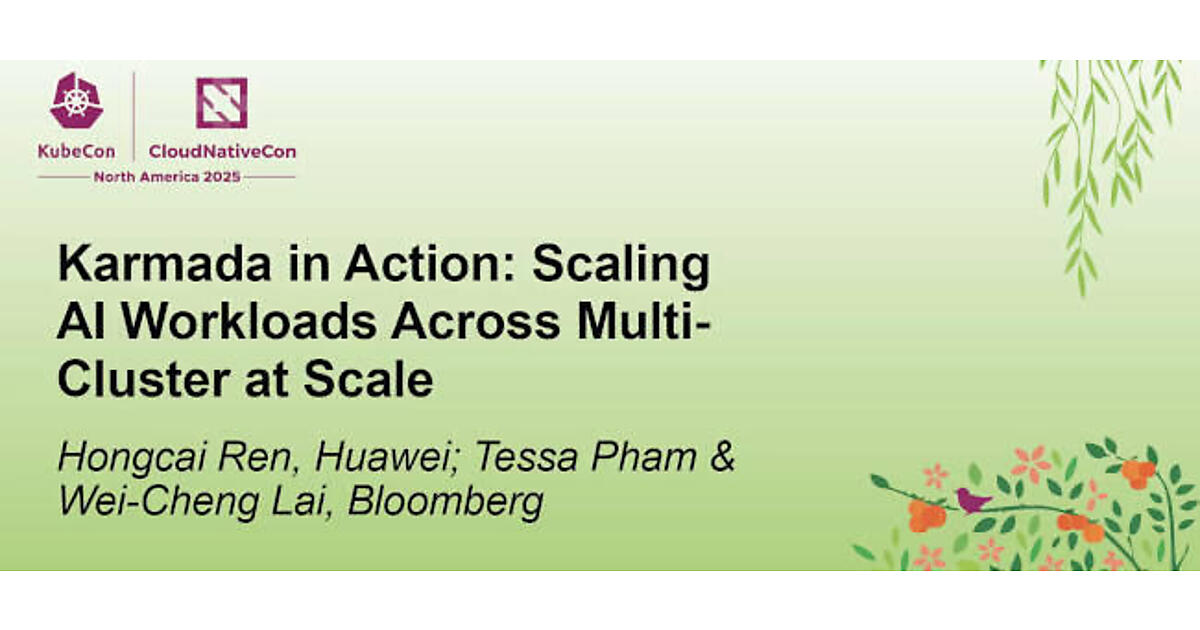 KubeCon+CloudNativeCon North America 2025から、Bloombergがマルチクラスター管理のためのツールKarmadaをAIワークロードのために実装したユースケースのセッションを紹介する。登壇したのはBloombergのTessa Pham氏とWei-Cheng Lai氏だ。予定されていたKarmadaのメンテナーであるHuaweiのHongcai Ren氏は参加できなかったとして、2名でのプレゼンテーションとなった。タイトルは「Karmada in Action: Scaling AI Workloads Across Multi-Cluster at Scale」意味としてはKarmadaを使ってAIワークロードをマルチクラスターにスケール可能な形で実装したというユースケースの解説である。動画は以下のリンクから参照可能だ。