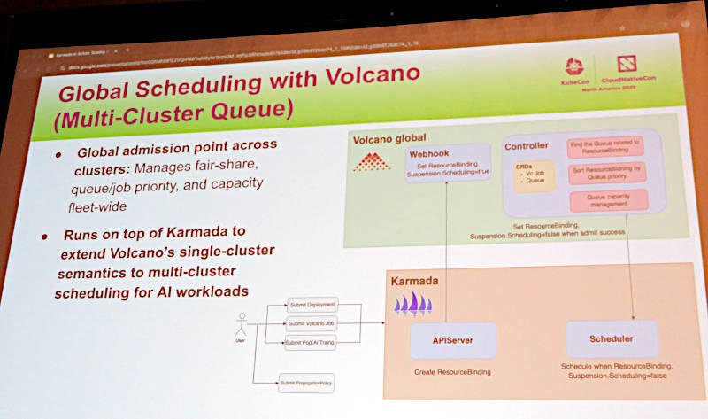 またバッチジョブの管理ツールであるVolcanoについても、Karmadaを利用することでシングルクラスターからマルチクラスターでのバッチキュー管理が可能になったことを説明した。