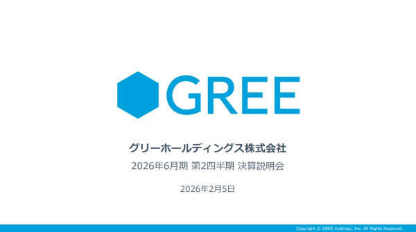 グリーホールディングス株式会社は2026年2月5日、2026年6月期第2四半期の決算を発表しました。連結業績は売上高127.1億円、営業利益4億円、当期純利益1.5億円です。投資事業での大型分配がなく、前四半期比で減収減益となりました。