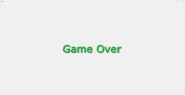 「game_over」メソッドではtitleメソッドと似たようなことをします。「GameOver.png」を表示し、それをクリックしたら「on_title」メソッドを呼び出し、ラベルを削除してタイトル画面に遷移します。