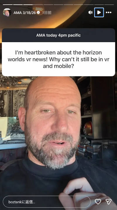 MetaのCTO(最高技術責任者)アンドリュー・ボズワース氏は、自身のInstagramにて、メタバースプラットフォーム「Horizon Worlds」の既存ゲームについて、VRでの提供を継続すると発表しました。Metaは2026年3月18日、Horizon WorldsのVR版を同年6月15日に終了すると発表していました。ボズワース氏の発言はその翌日のものです。同氏は「ファンの声に応えるため、既存ゲームについてはVRでも引き続き動作させることを決定した」と述べています。
