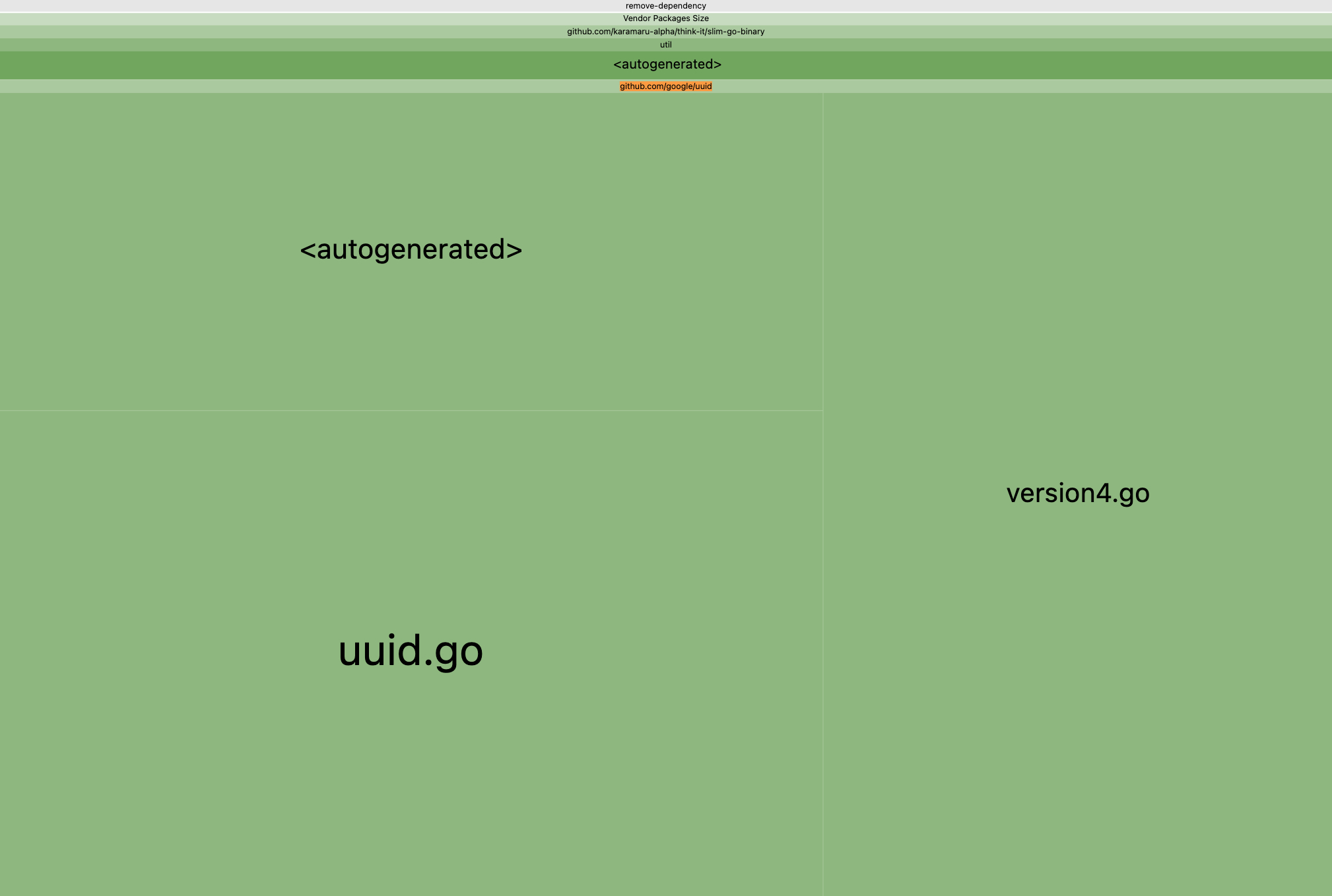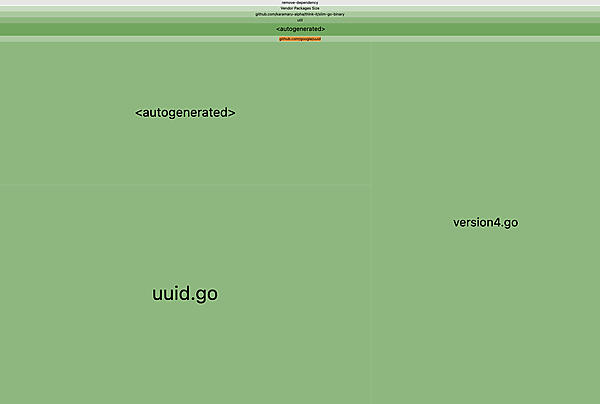 さて、go-size-analyzerのサードパーティセクションに再度着目すると、実処理では使わないgithub.com/google/uuidが依存に含まれていることを確認できます。