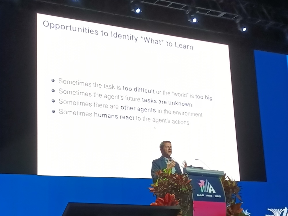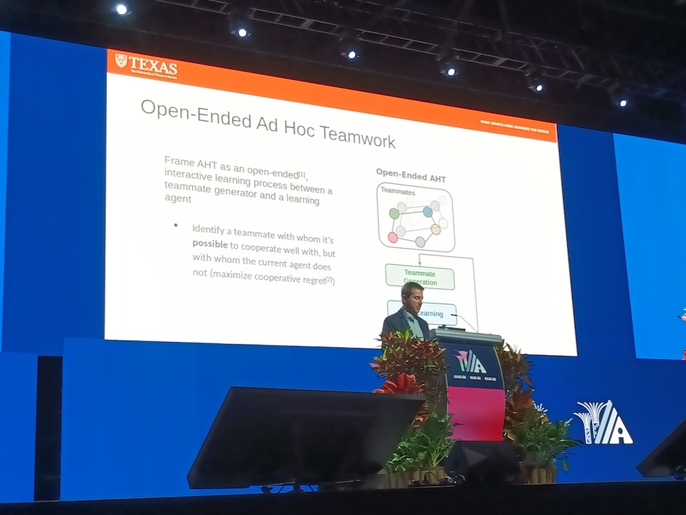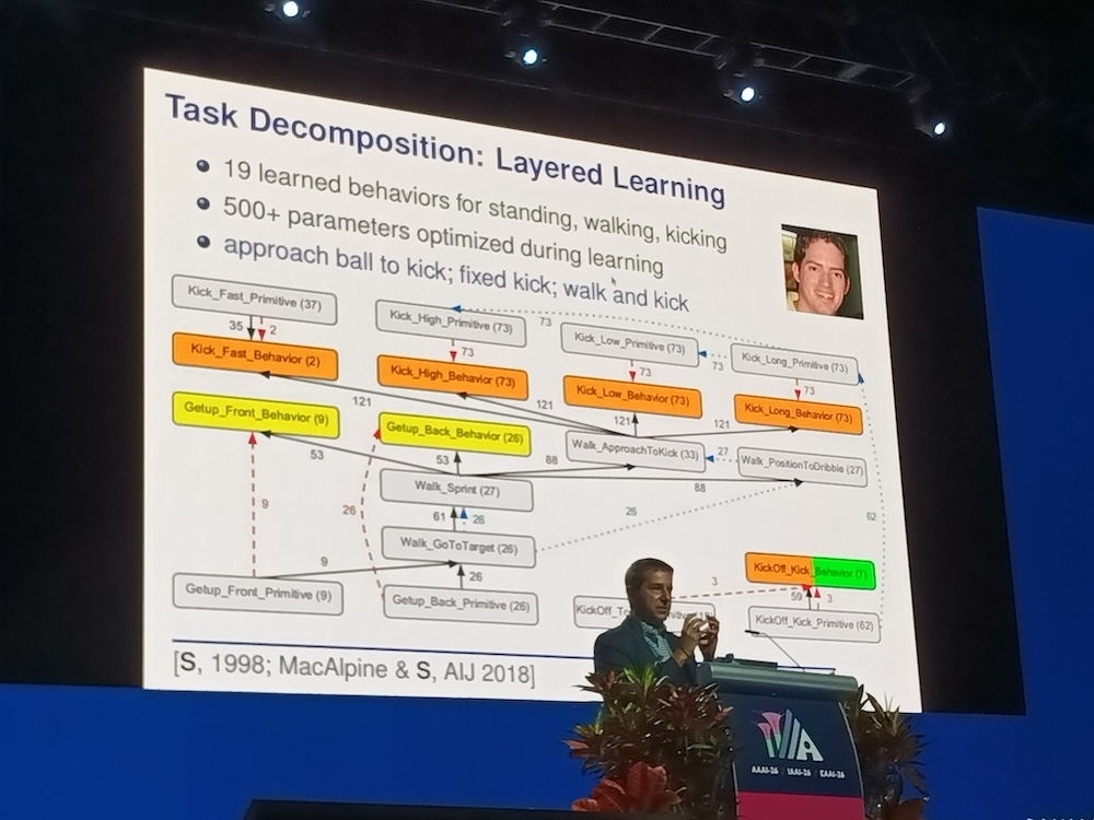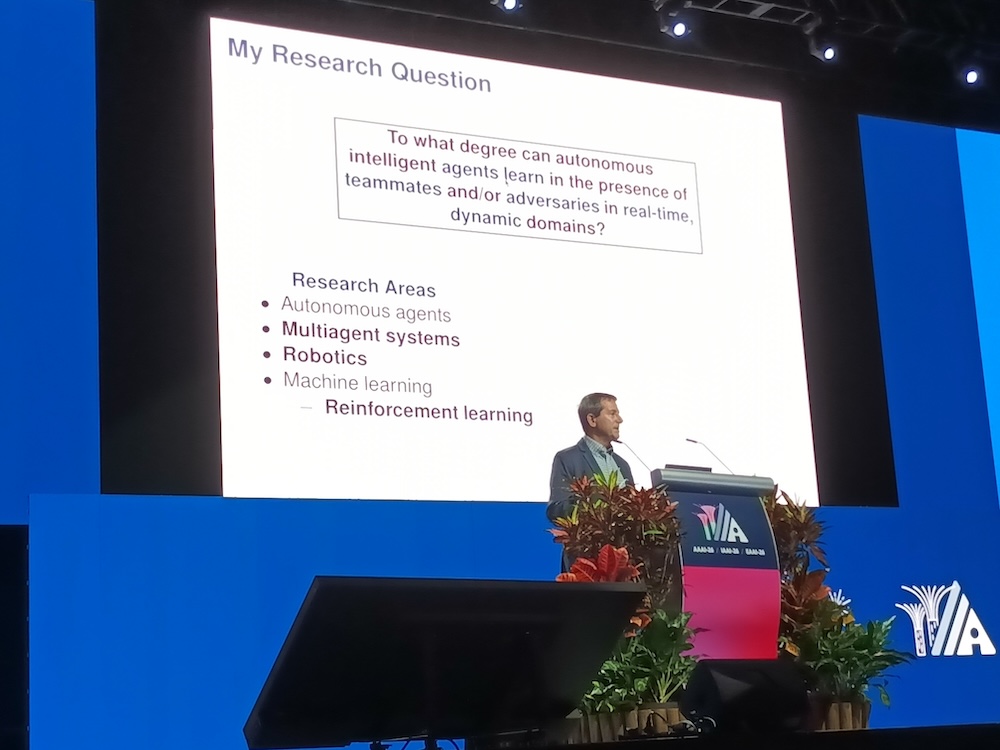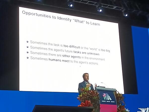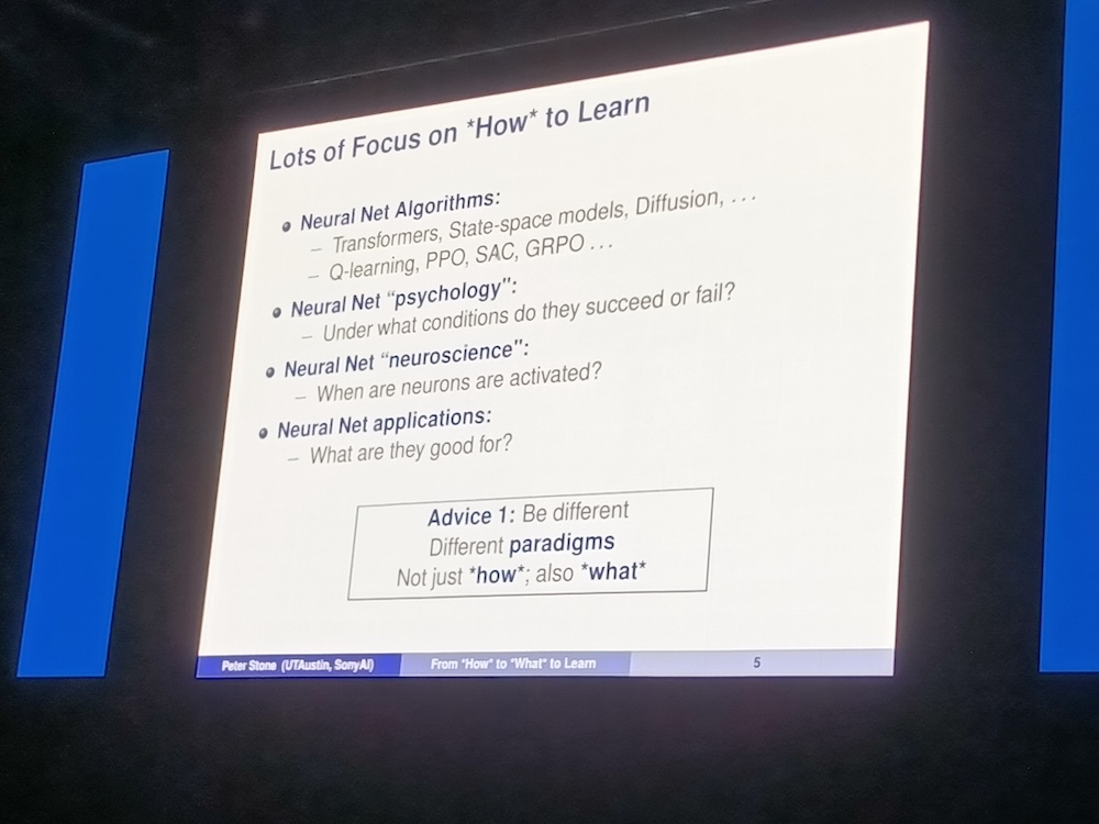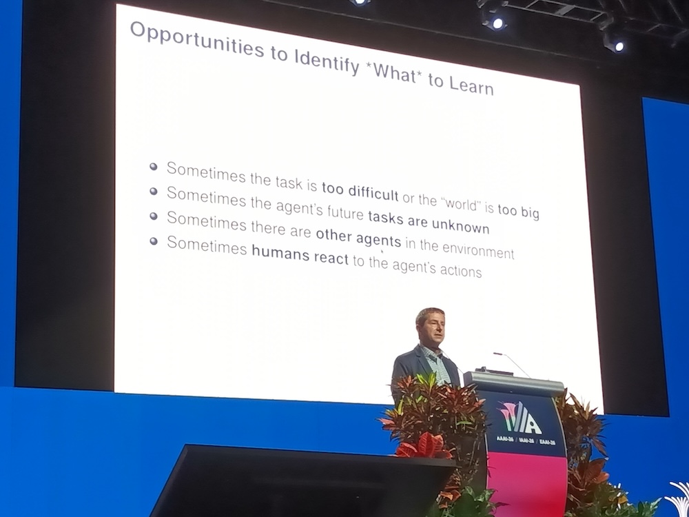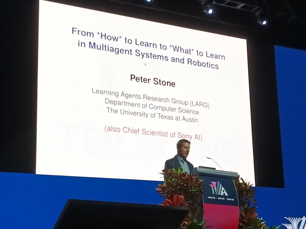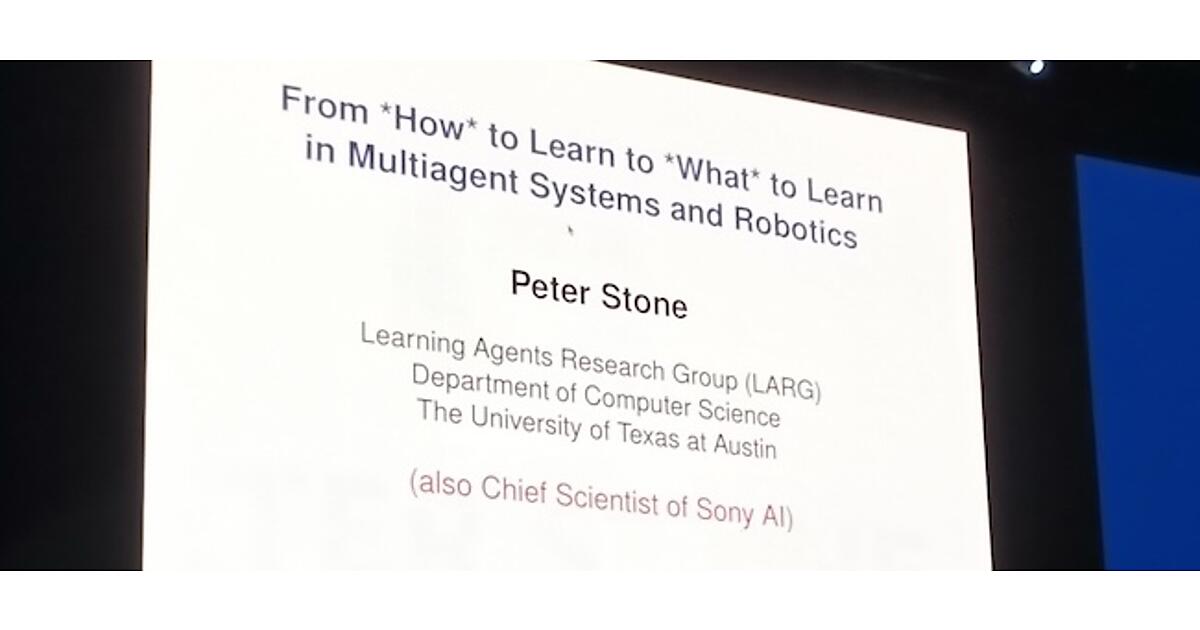 人工知能の国際会議AAAI-26から、2026年1月22日のInvited Talk「From How to learn to What to learn in Multiagent Systems and Robotics」というセッションを紹介する。Invited TalkはKubeConであればキーノートという位置付けのセッションでAAAIではメンバーであるアカデミアの研究者や企業のエグゼクティブが登壇して約1時間の講演を行うというものだ。ここではテキサス大学オースティン校の教授、Peter Stone氏が自律的なAIを実現するために「どのように学ばせるかではなく何を学ばせるか?」が重要であることを解説した内容となった。