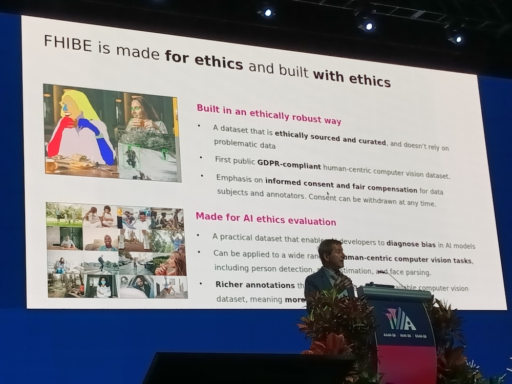 最後に自身が所属するSony AIが公開したFHIBE(Fair Human-Centric Image Benchmark)を紹介。FHIBEは81カ国以上から同意を得て収集した1,981人の画像データを使ってAIモデルのバイアスを詳細に診断するためのデータセットである。今回のテーマとは直接関係しないがSony AIに対する貢献として宣伝する機会を最大限に使いたかったということだろう。