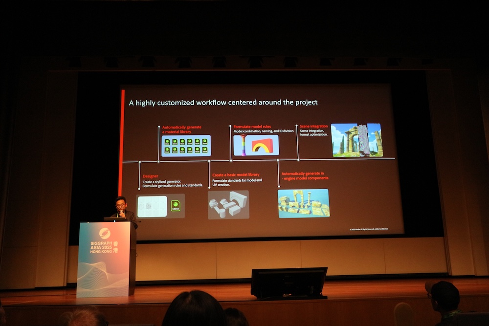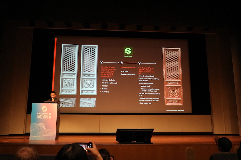 Adobeの公式ページを見れば何をするツールかは理解できるだろう。プレゼンテーションはAdobeのShayla Yin氏だが、途中でハリウッドや中国のCGプロダクションのアーティストを招いて実際に体験を語らせるという構成をとり、映画で使われる背景や素材作成のワークフローなどを解説した。コンピュータグラフィックスは現代の映画製作には欠かせない重要な要素だが、研究の立場から実際にコンピュータグラフィックスを使う現場としてもCGプロダクションは有望な職業だろう。その経験を実際に語らせることは大きな意味があると思われる。