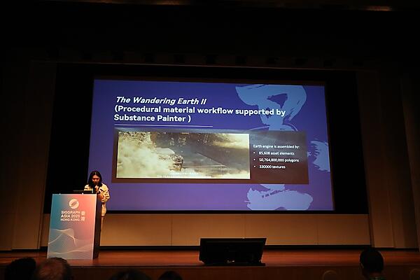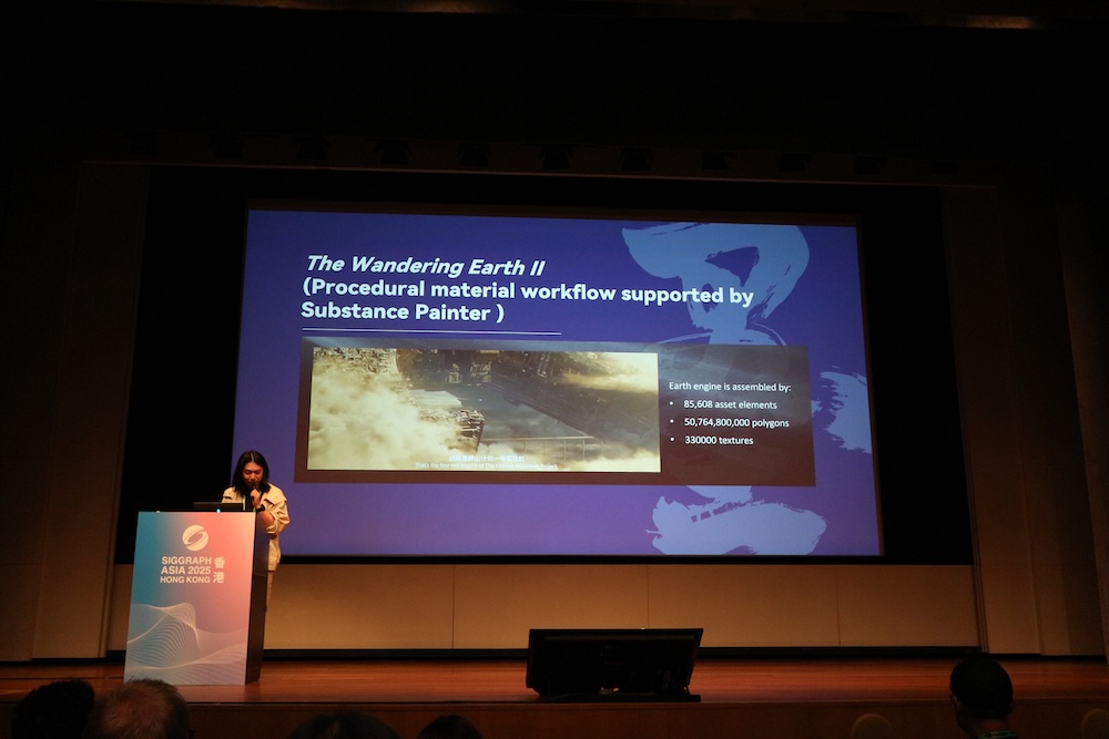 次に登壇したのは、MORE VFXというプロダクションのシニアアセットアーティストであるJerry QIU氏だ。MORE VFXはThe Wandering Earth 2というSF映画のVFXを担当したプロダクションで、QIU氏は作成したシーンを見せながらAdobe Substance 3Dを使ったユースケースを解説した。