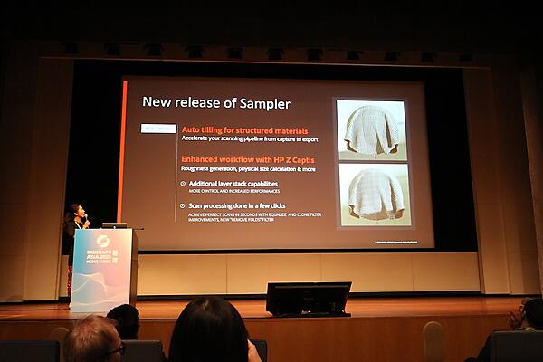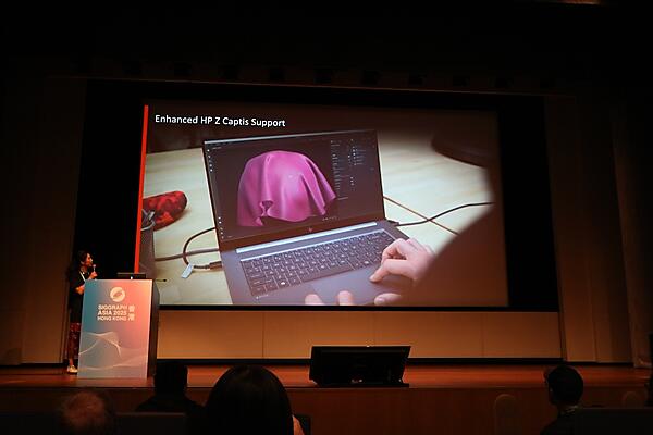 ここではHPが開発したスキャナー、HP Z Captisへの対応などを紹介した。例えば、布地を高精密なスキャナーで読み取ることでそのデータを実際の物体(人体や鞄など)に応用するという使い方だろう。服のモデルは3Dのオブジェクトとして作成し、それに布地をデータとして貼り付けることでよりリアルな服地が完成するというわけだ。