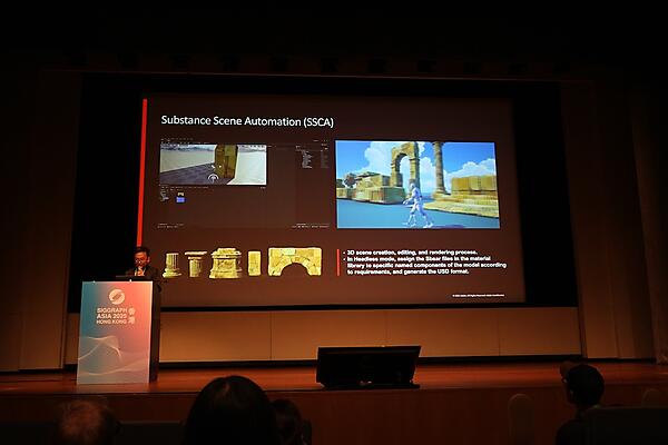 Adobeは映画製作には欠かせない背景などのアセットを作成するSubstanceの解説とユースケースをユーザーに語らせたセッションとなった。参加者の多くは学生と研究者であることを考えると、短期の利益ではなく業界での優位性を示すためのプレゼンテーションであったと言える。スポンサーとしては展示ブースに予算を使わずにセッションのために使い切ったという方針だろう。