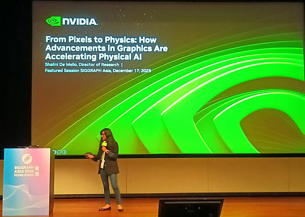 SIGGRAPH Asia 2025でのAdobeのセッションに続いて、同様にシアターを使って1時間のプレゼンテーションを行ったNVIDIAのスポンサーセッションを紹介する。Adobeと同じように展示ブースにはコストをかけずに、このセッションにリソースを集中させた形になっていた。