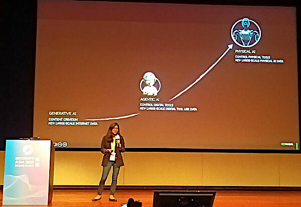 NVIDIAは生成AIからエージェンティックAIという進化の先にPhysical AI(物理的な実体を持ったAI、物理AI)が来ると信じていることを説明。