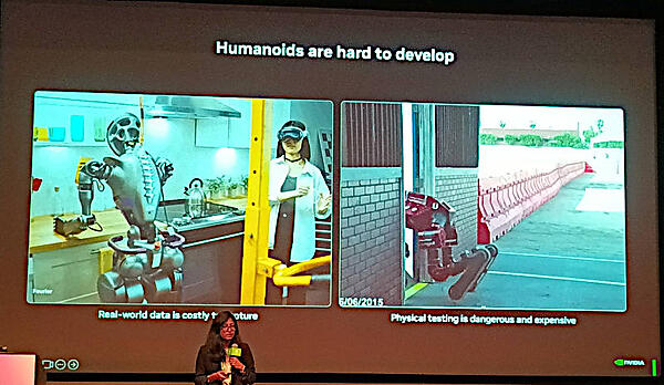 しかしヒューマノイドの開発は多くの失敗を重ねてきたとして、成功するためにはグラフィックスと生成AIが必要であることを説明した。
