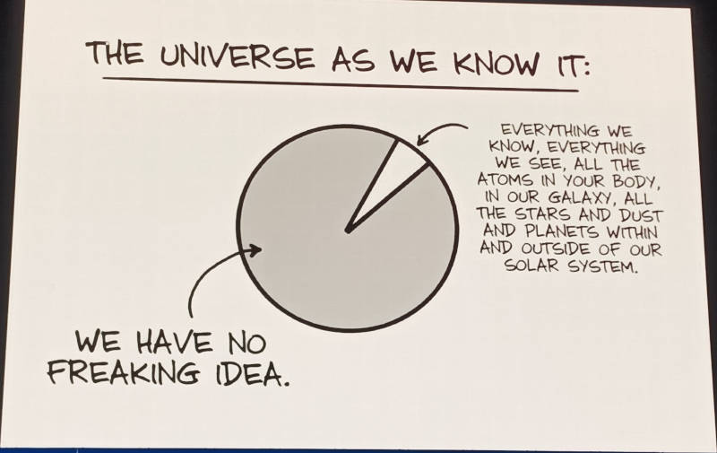 Whiteson氏は人間が持つ素朴な疑問を提示して、それがどのように解明されていくのか? を科学、物理の立場から説明した。
