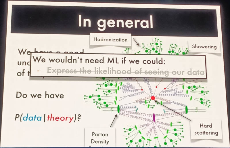 そして素粒子物理学において機械学習が必要な理由を、ここからかなりの時間を使って解説した。