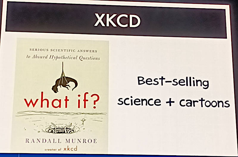 またサイエンスや数学、歴史に関係するトピックを、ジョークを交えてイラストで表現するxkcdも紹介。Whiteson氏の中ではxkcdもサイエンスコミュニケーションの実装例であるということだろう。
