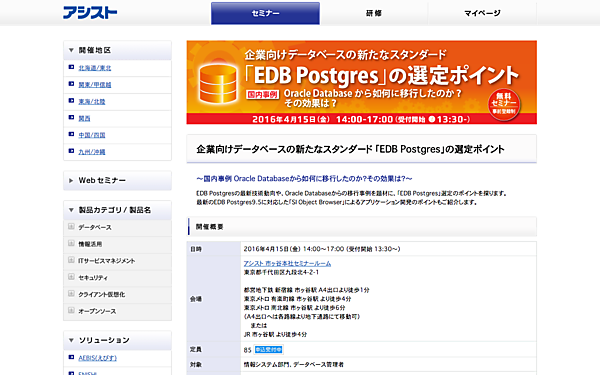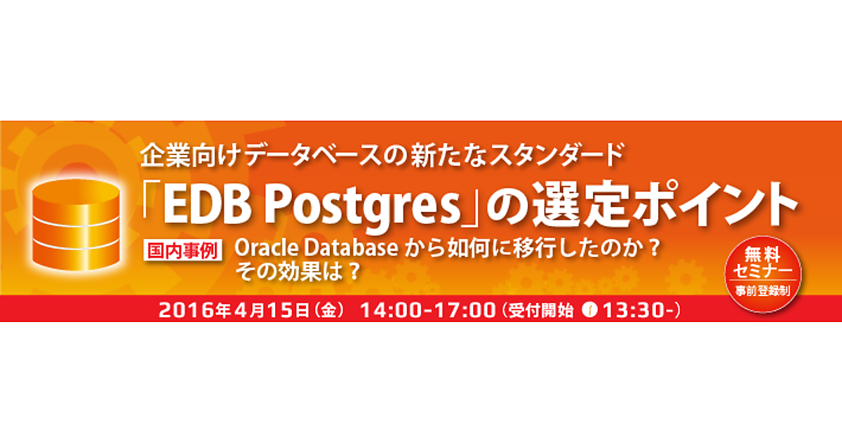 - 共催:株式会社アシスト、エンタープライズDB株式会社、株式会社 システムインテグレータ