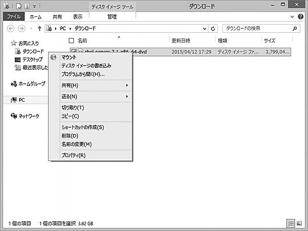 - DVDイメージのファイルを右クリック