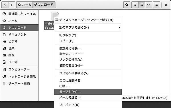 RHEL 7のDVDイメージをUSBメモリーに書き込むことによって、USBメモリーからインストーラーを起動することもできます。4GB以上のUSBメモリーを用意してください。Linuxで書き込む場合は、RHEL 7のインストールイメージをddコマンドでUSBメモリーに書き込みます。