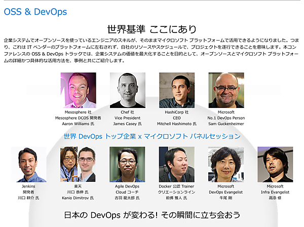 オラクルやアップルなどの老舗のテクノロジーカンパニーにとって開発者を自社のエコシステムに呼び寄せて確固たる共栄圏を作るのは常套手段だ。マイクロソフトはWindowsとWindowsに特化した開発者向けツールを使ってそれをもっとも強力に推し進めたリーダーである。そのような企業が年次のテクノロジーカンファレンスで自社製品の次期バージョンを披露したり、自社が持つ新しい技術の方向性を示すことで、開発者をエンゲージ、悪く言えば囲い込むのは当たり前だろう。だが、今回のマイクロソフトのカンファレンスでは様子が違うという。DevOpsを中心にマイクロソフトでエバンジェリスト活動に従事する3人のエバンジェリストにde:code 2016の見どころについて聞いた。