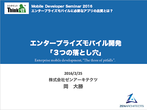 セミナーURL:Think IT Mobile Developer Seminar 2016 失敗しないためのエンタープライズモバイル。チーム運用とテストの最適解